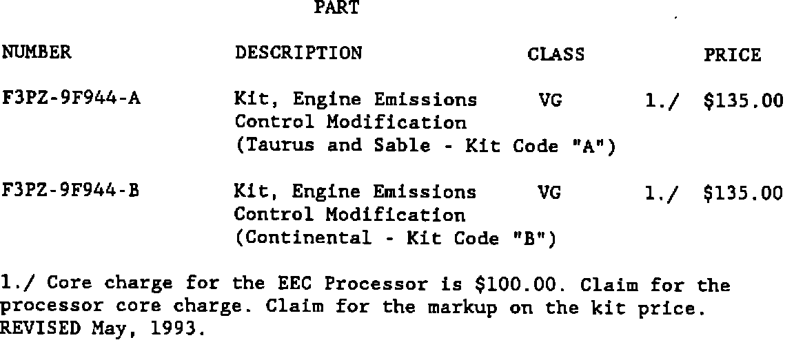 Home >> Ford >> 1988 >> Taurus V6-232 3.8L >> Repair and Diagnosis >> Powertrain Management >> Computers and Control Systems >> Engine Control Module >> Technical Service Bulletins >> Recalls >> Recall - Emission Control Modifications >> Attachment II - Revised
