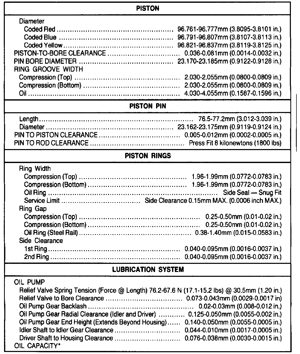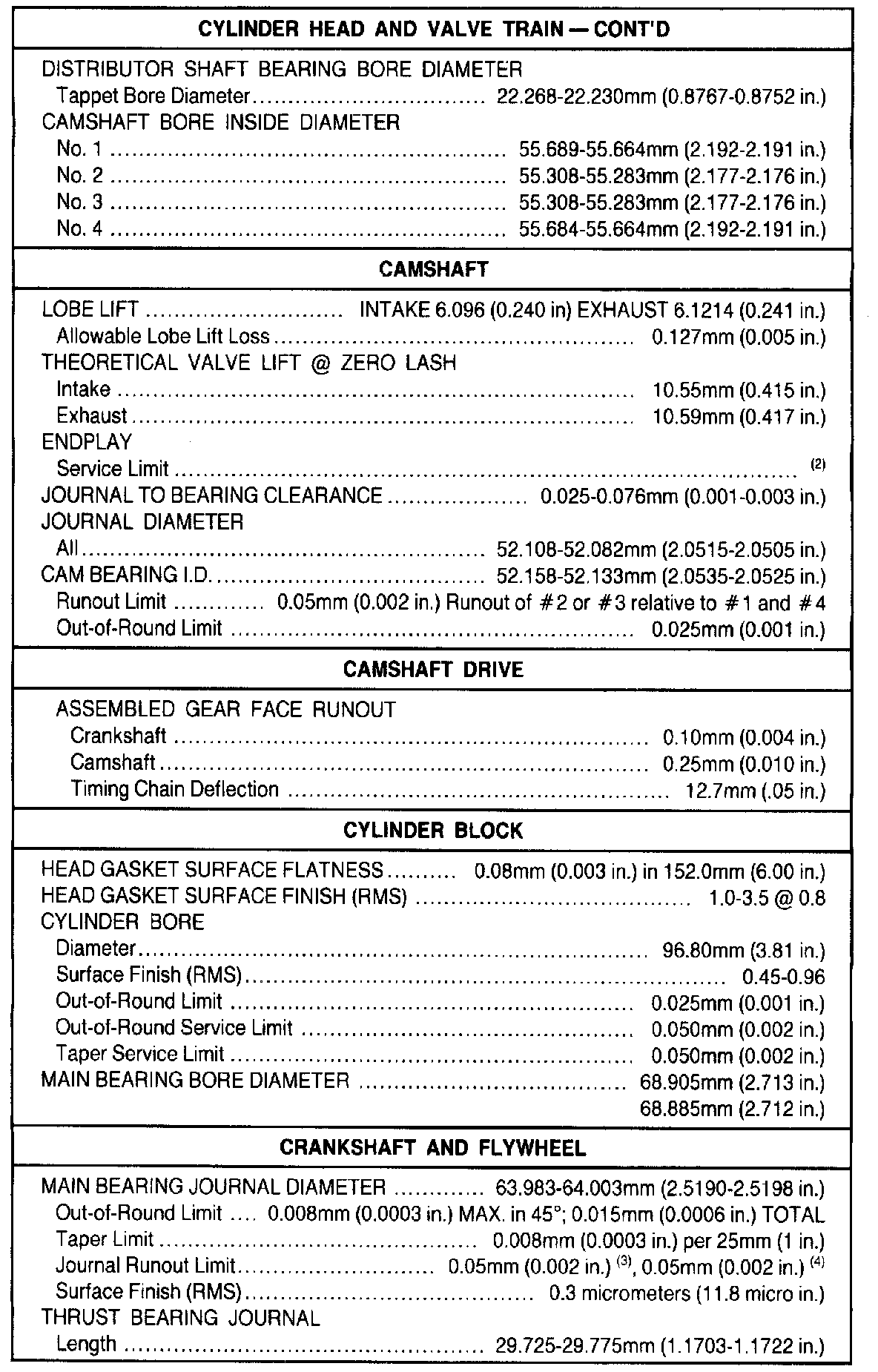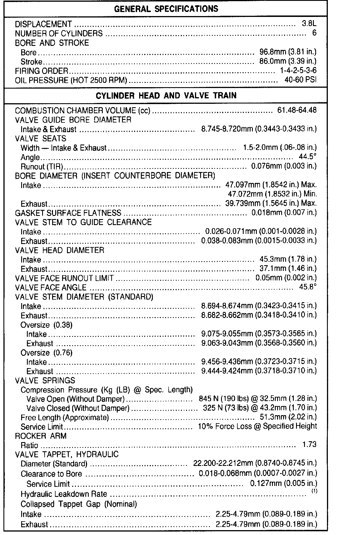 (1) 20-200 seconds to leakdown 3.18 (0.125 in) with 225 Newtons (50 pounds) load and tappet filled with leakdown fluid.