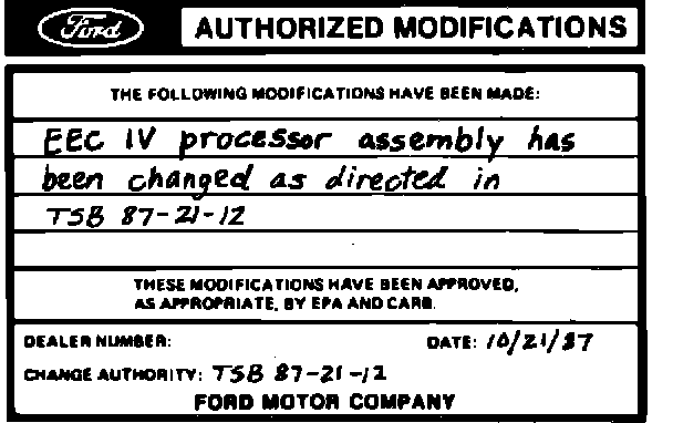 ACTION: To correct this, install a new improved EEC IV processor assembly.