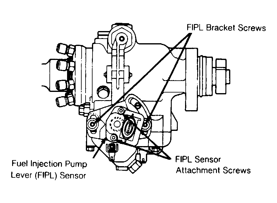 If bracket is loose or shows signs of wear, remove epoxy from bracket mounting screw heads. Loosen bracket screws and turn FIPL bracket assembly into adjustment range. Retighten screws and apply epoxy to screw heads. Remove gauge block and rerun QUICK TEST. If service codes are present after adjustment procedure, replace FIPL sensor.