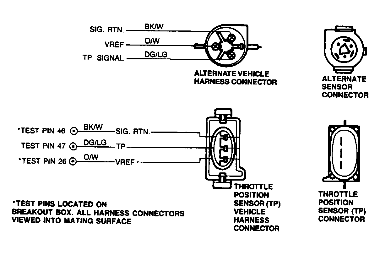 - Checking For VREF at TPS. Turn key off and wait 10 seconds. Set DVOM on 20-volt scale. Disconnect TPS. Turn key on, leaving engine off. Measure voltage between VREF and SIGNAL RETURN at TPS harness connector. See Figure . If reading is not 4-6 volts, go to TEST A3 - REF . VOLTAGE, step 1). If reading is 4-6 volts, reconnect TPS and go to next step.