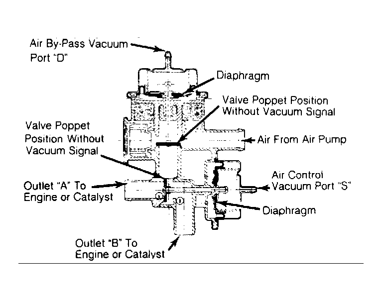 This valve combines the operational function of air by-pass valve and air control valve into a single unit. There are 2 normally closed type valves. One type is a non-bleed type and one is a bleed type. See Fig 1 . The bleed type have the bleed percentage molded into plastic case and are available with different percentages.
