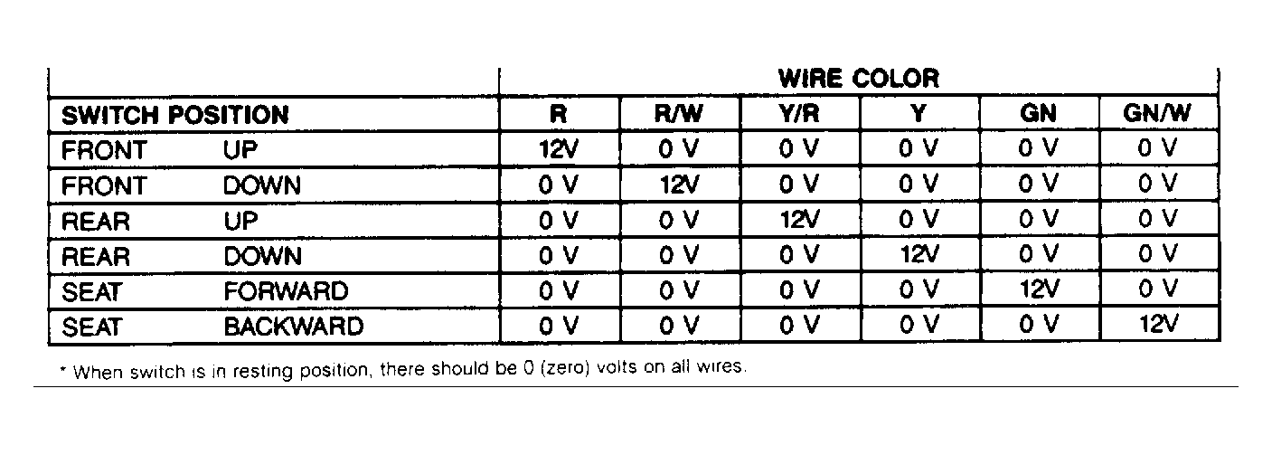Home >> Ford >> 1989 >> Probe GL, Standard >> Repair and Diagnosis >> Body & Frame >> Seats - Power >> Testing >> Power Seat Switch Test