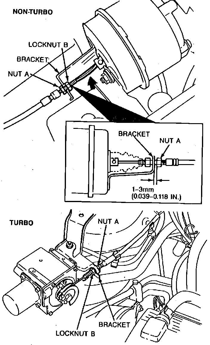 4. Position adjusting nut A until there is 0.039-0.118 inch clearance between nut A and bracket.