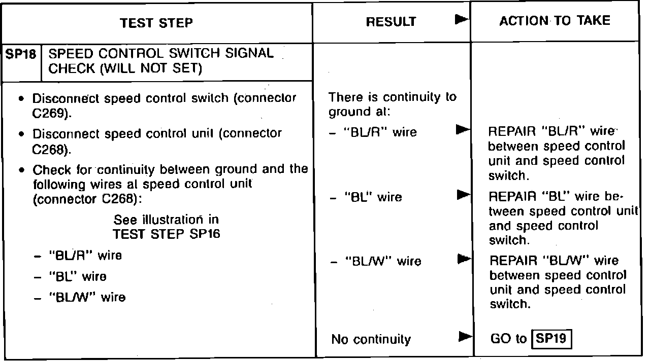 SP18: Speed Control Switch Signal Check
