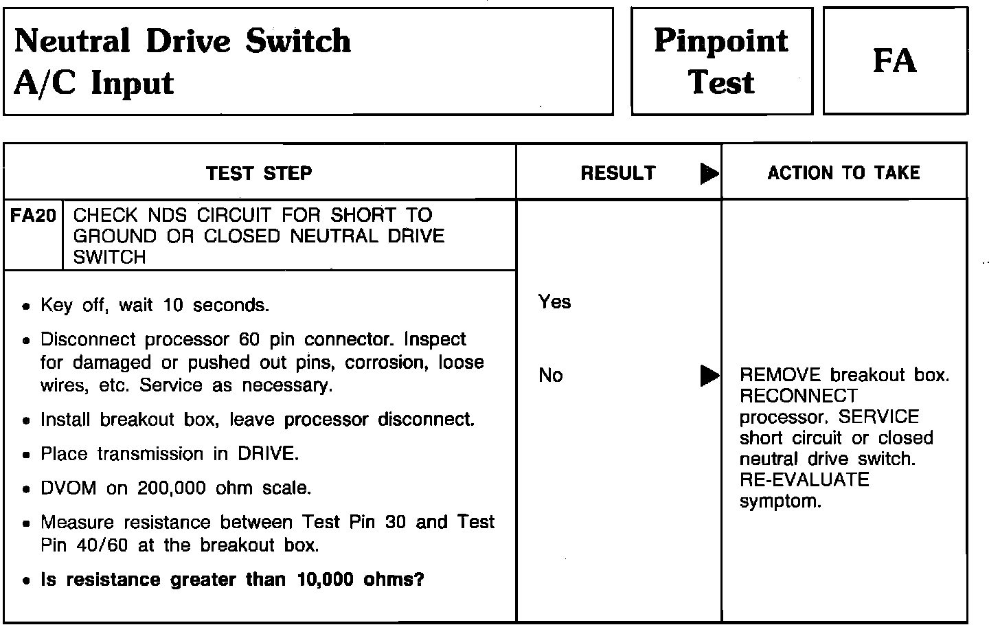 Pinpoint Test FA20 - Neutral Drive Switch A/C Input: