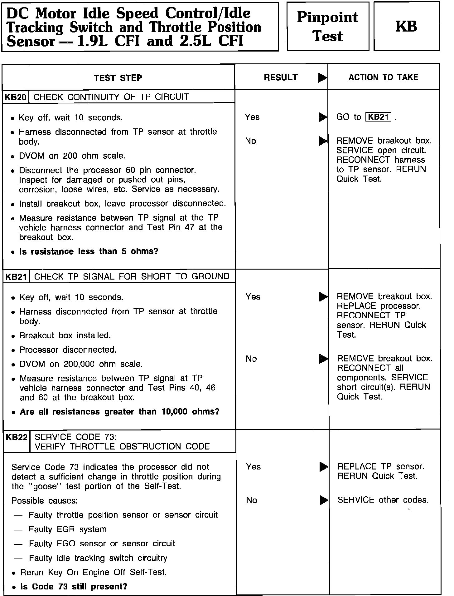 Pinpoint Test KB20 Thru KB22 - DC Motor Idle Speed Control/Idle Tracking Switch/TPS: