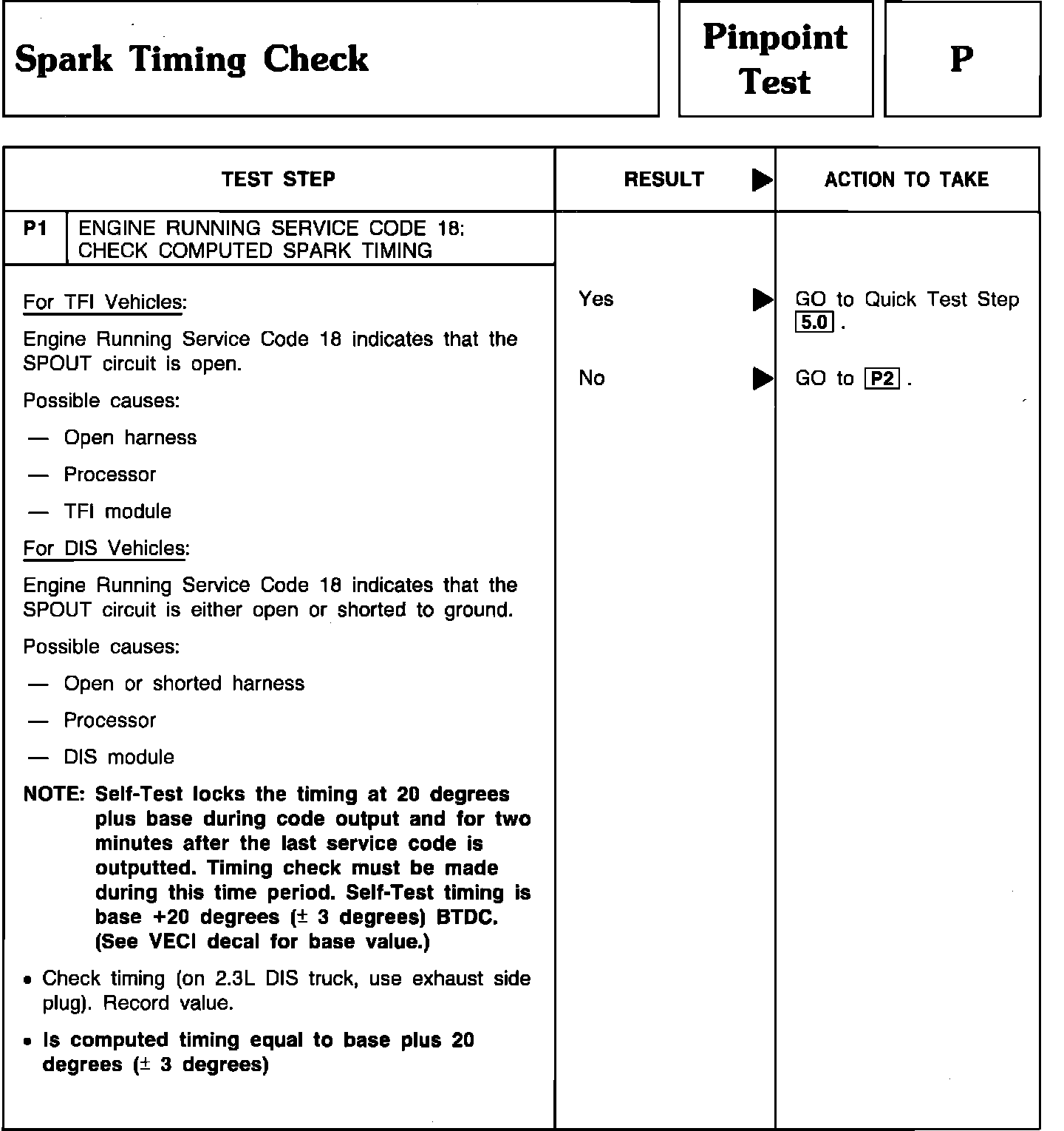 Pinpoint Test P1 - Spark Timing Check: