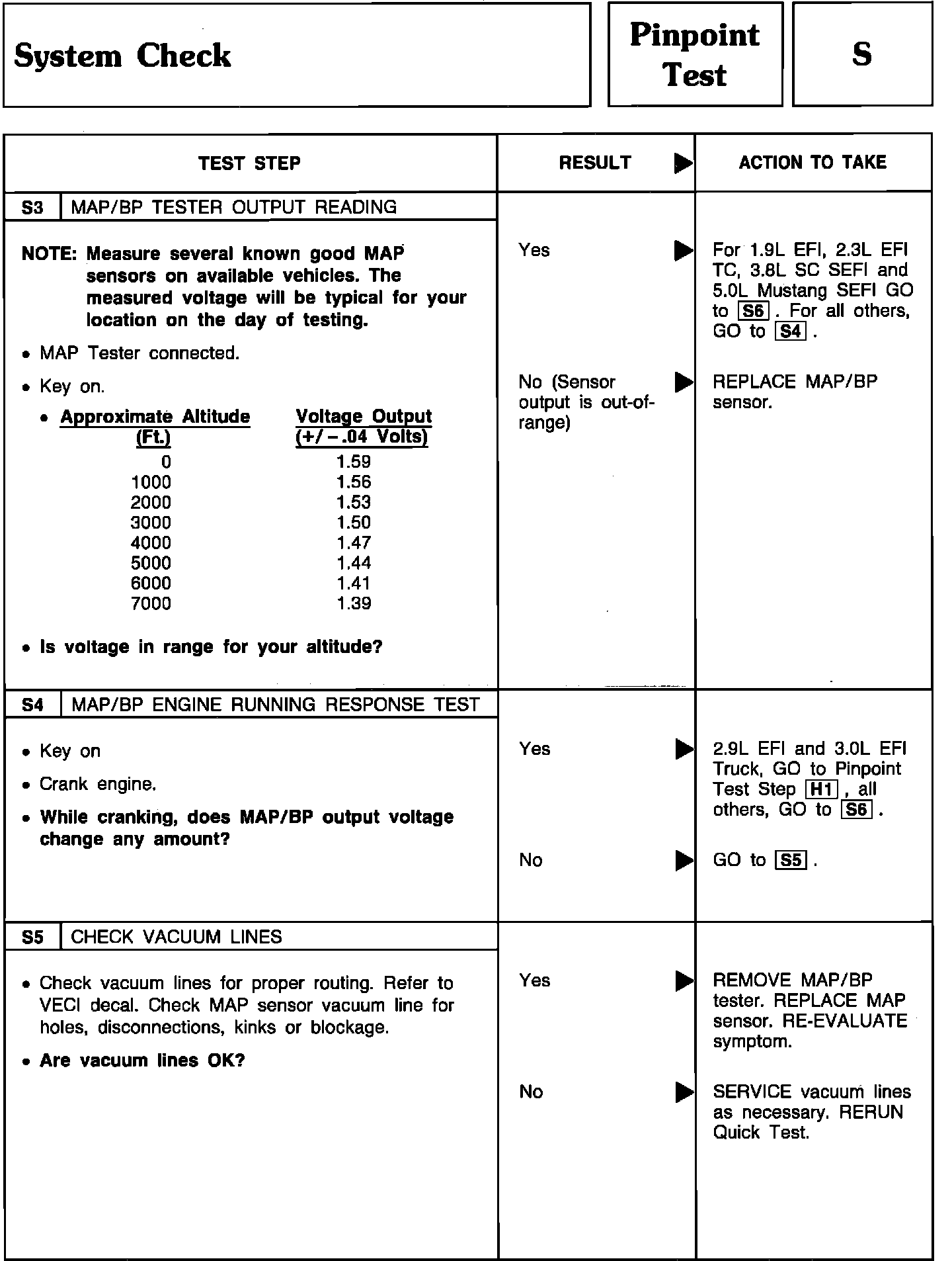 Pinpoint Test S3 Thru S5 - System Check: