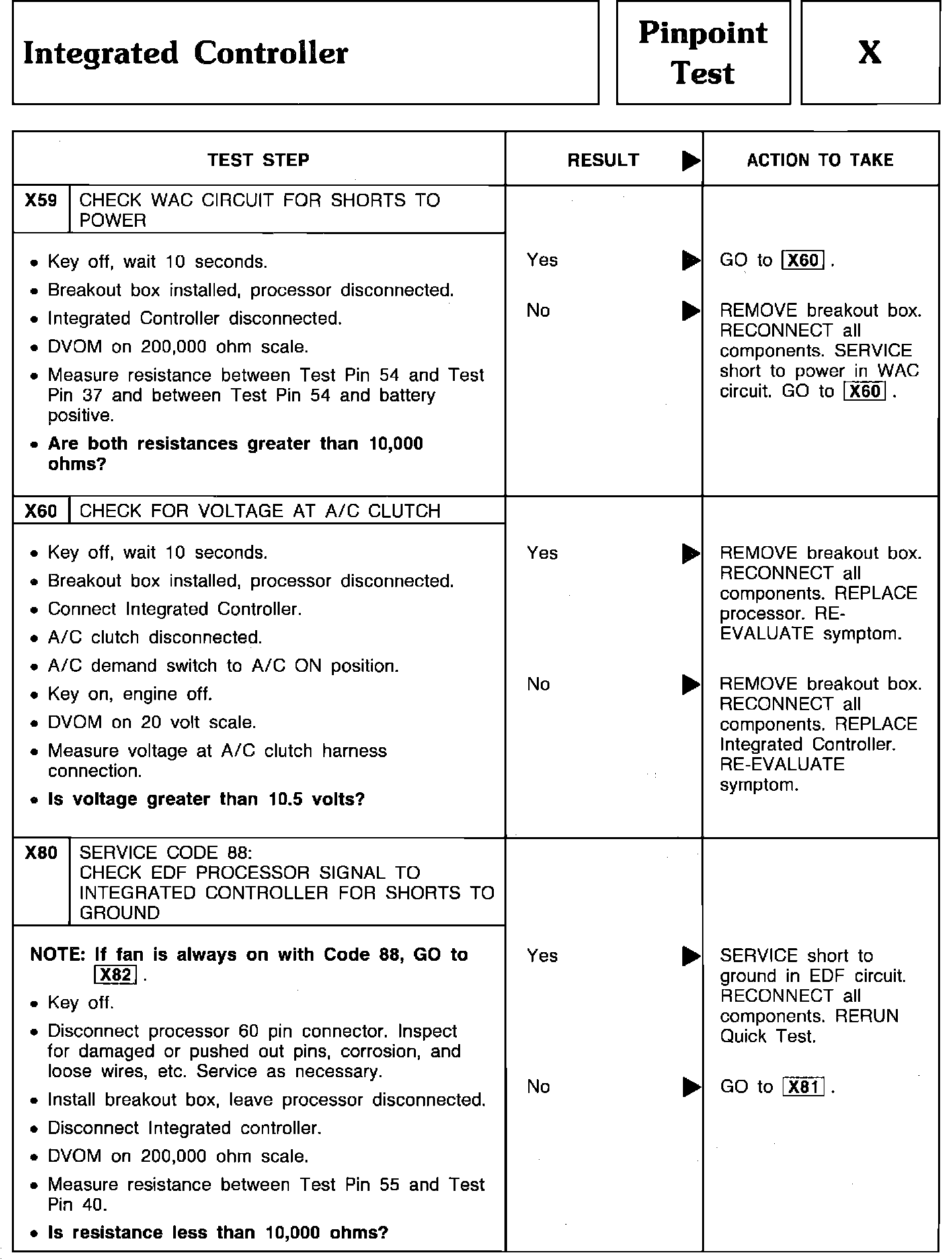 Pinpoint Test X59 Thru X80 - Integrated Controller: