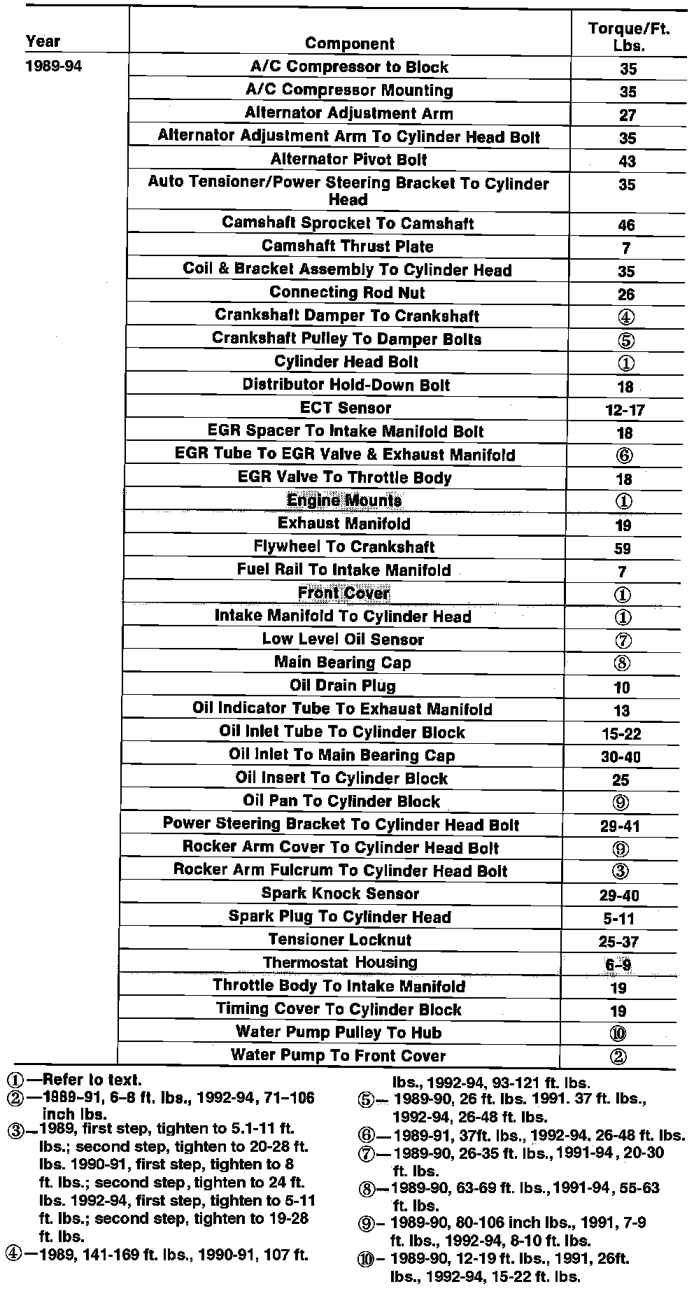 Tightening Specifications: