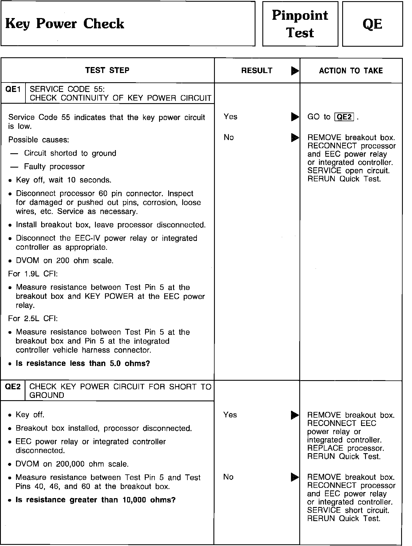 Pinpoint Test QE1 Thru QE2 - Key Power Check: