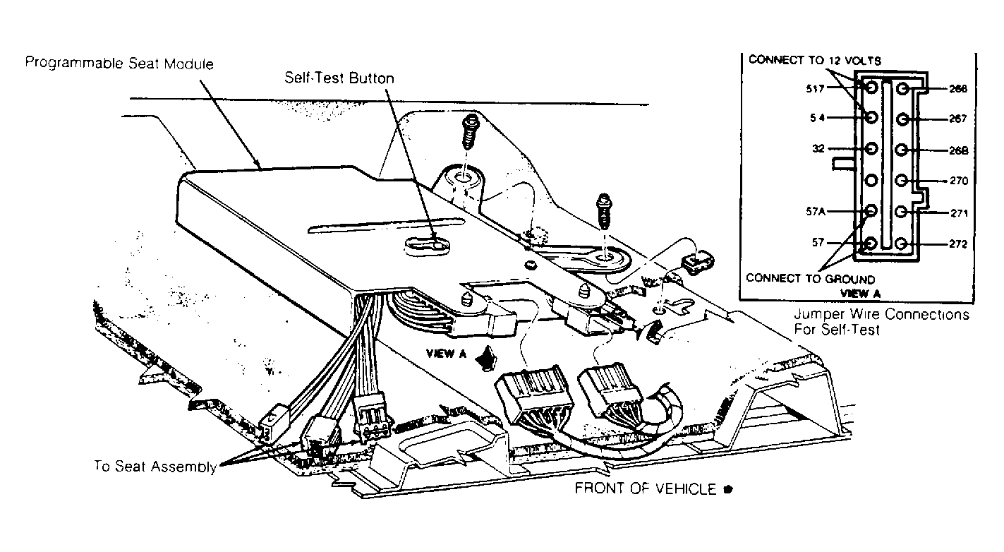 - Unplug all module connectors. Apply 12 volts to terminal Nos. 54 and 517. Connect terminal Nos. 57 and 57A in Gray connector to ground. See Fig 1