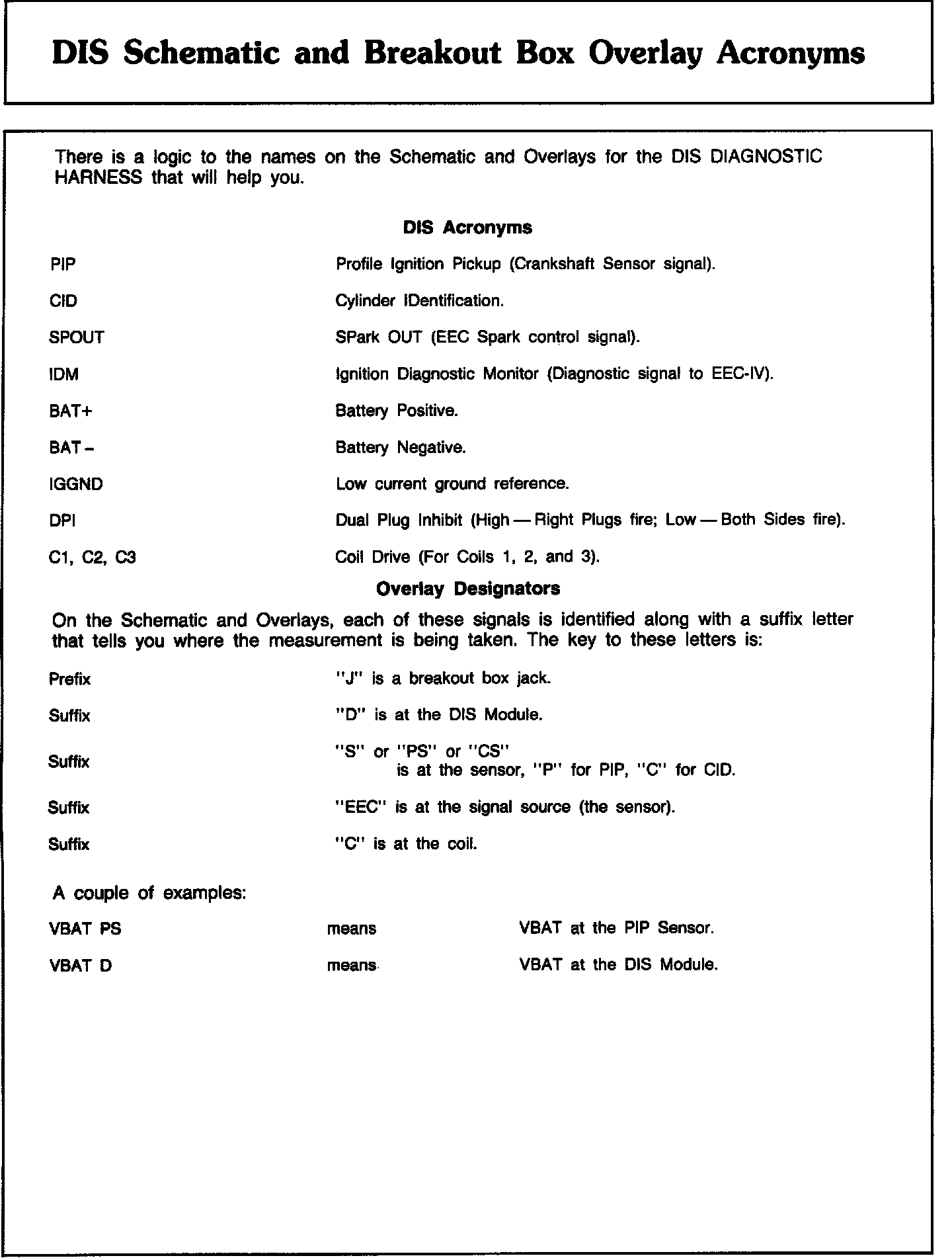 Abbreviations for the Schematic, Pinpoint Tests, and Breakout Box Overlay: