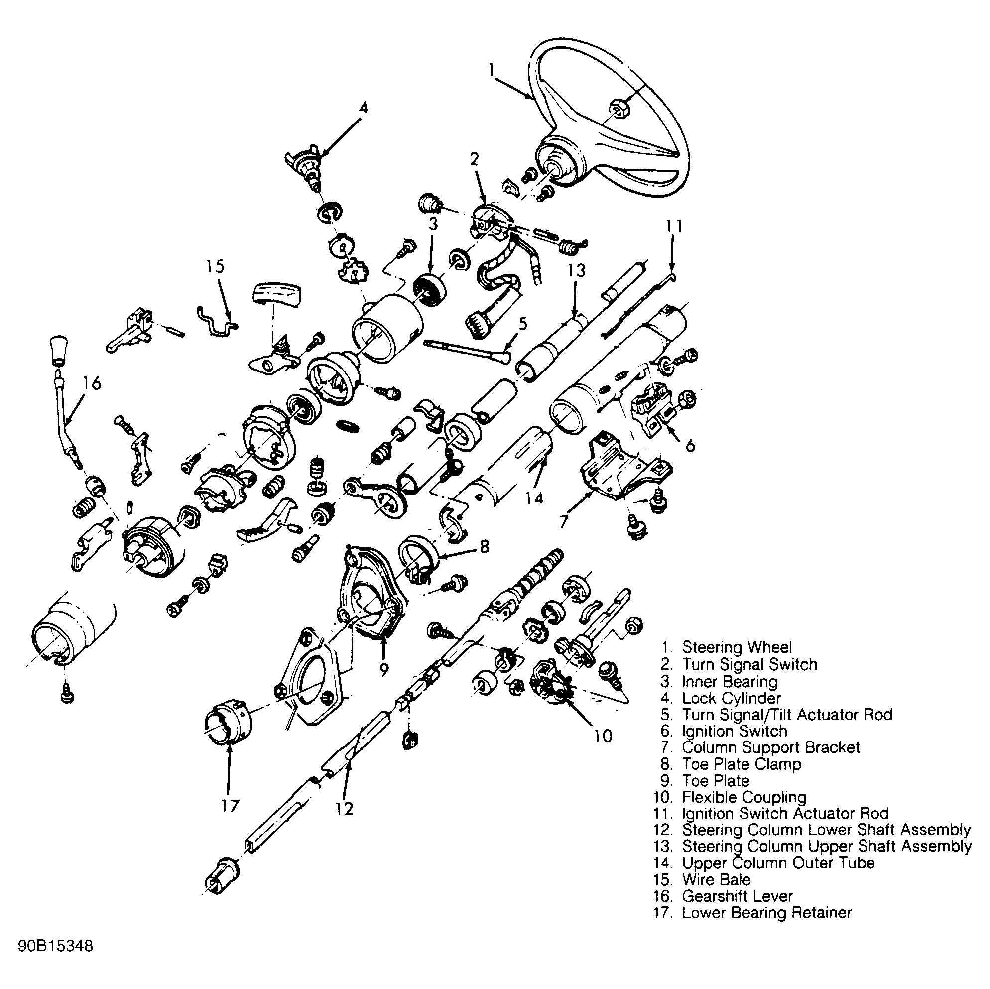 Fig 3: Exploded View of Non-Tilt Steering Column ("E" Series With A/T)