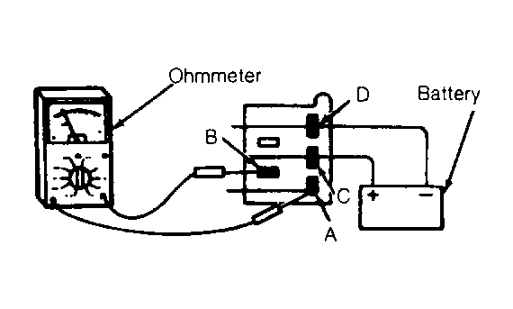 1. Turn ignition on. Use voltmeter to measure voltage between ground and terminals "B" (Red) and "C" (Black/Yellow) or "A" (Yellow). See Figure . If voltage at each terminal is more than 10.5 volts, voltage supply is okay. Proceed to FUEL PUMP RELAY RESISTANCE CHECK  . If voltage reading is 10.5 volts or less, proceed to steps 2 and 3.