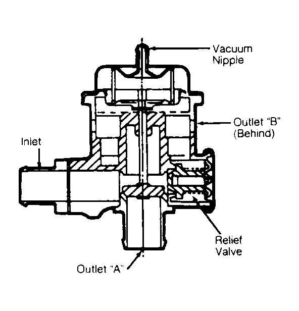 3. Connect a vacuum line from manifold vacuum fitting to air control valve vacuum nipple. Accelerate engine to 1500 RPM. Airflow should be heard and felt at outlet "A" with little or no airflow at outlet "B".