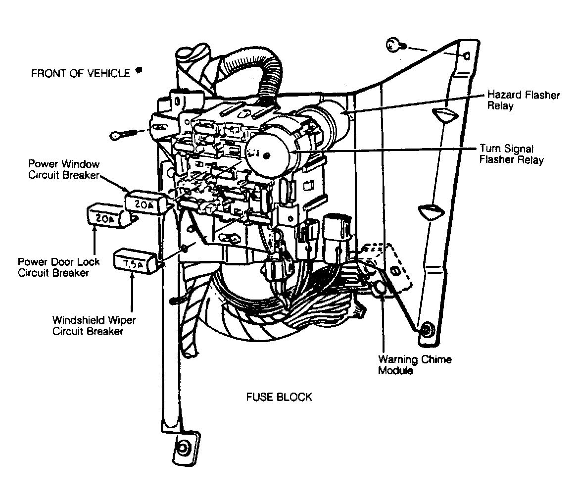 | Power Windows | In cavity No. 14 of fuse block. See Figure . | |