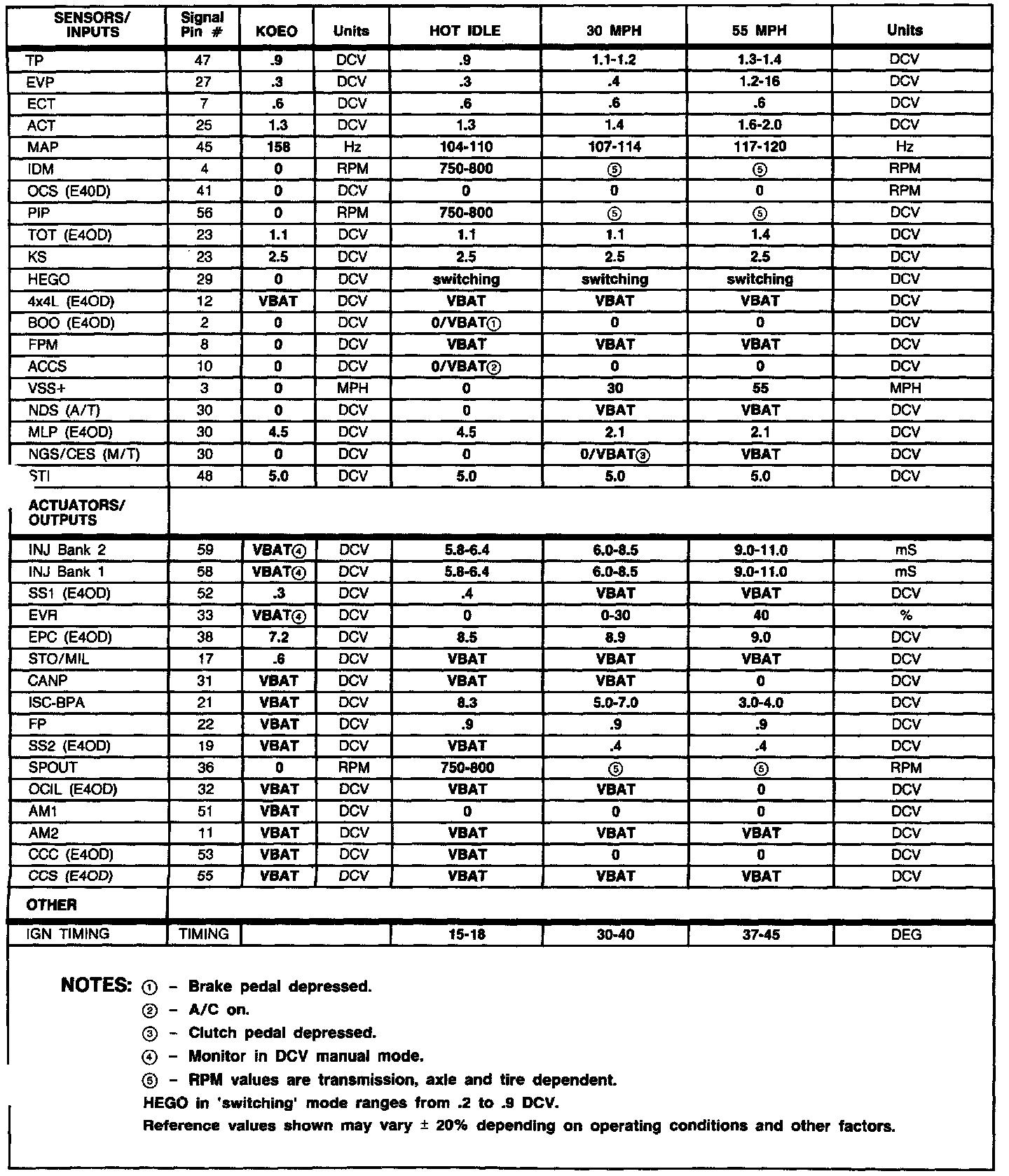 Normal Scan Data Values (Includes PIDs)