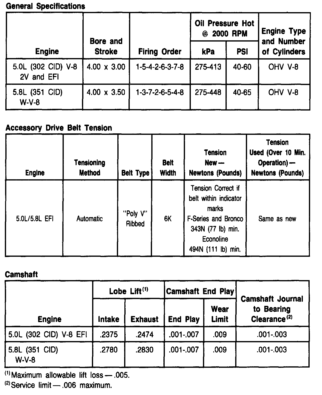Home >> Ford >> 1990 >> E 150 Van V8-351 5.8L >> Repair and Diagnosis >> Specifications >> Mechanical Specifications >> Engine >> System Specifications >> General Specifications