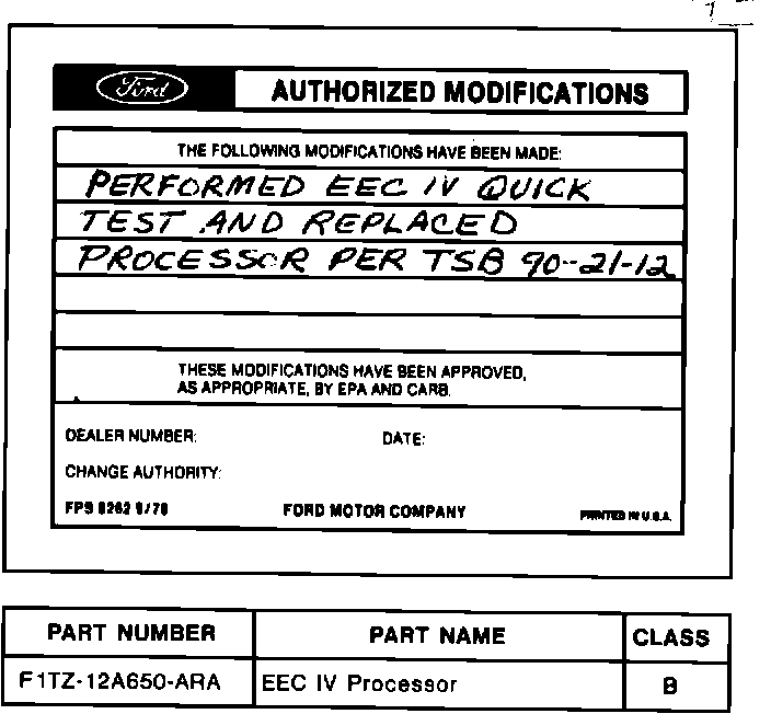 3. Replace the existing EEC IV processor with EEC IV processor (F1TZ-12A650-ARA)