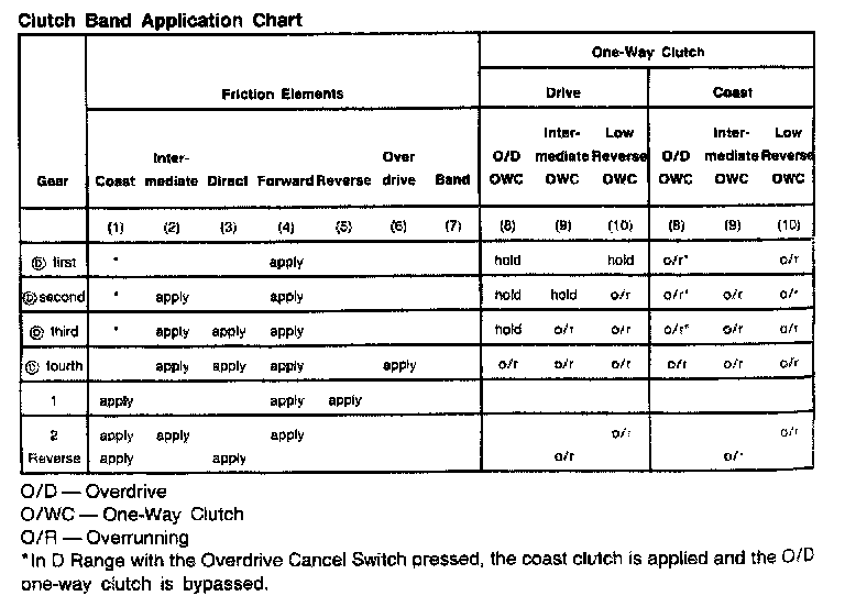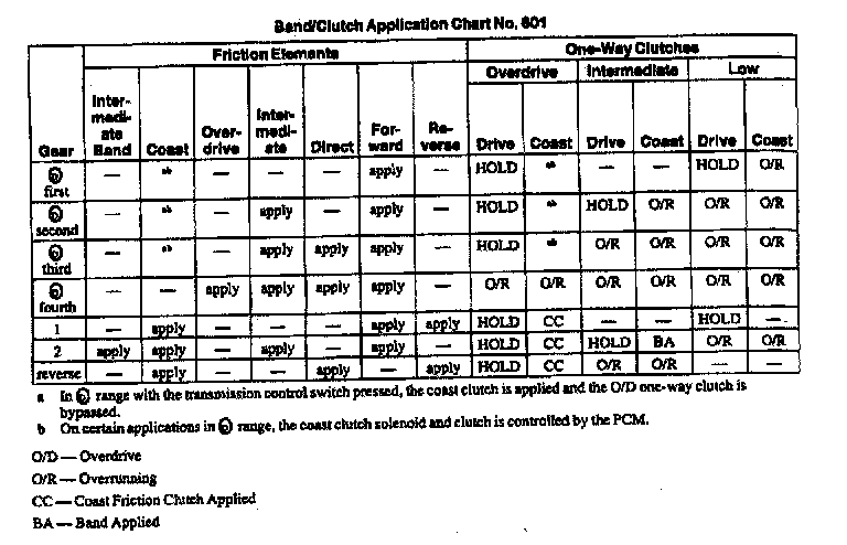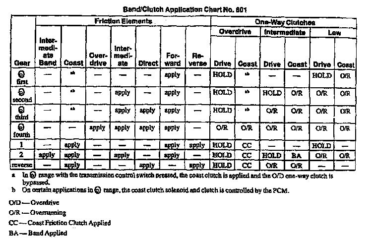 E4OD 4-spd A/T, Clutch/Band Application: