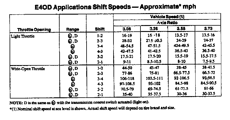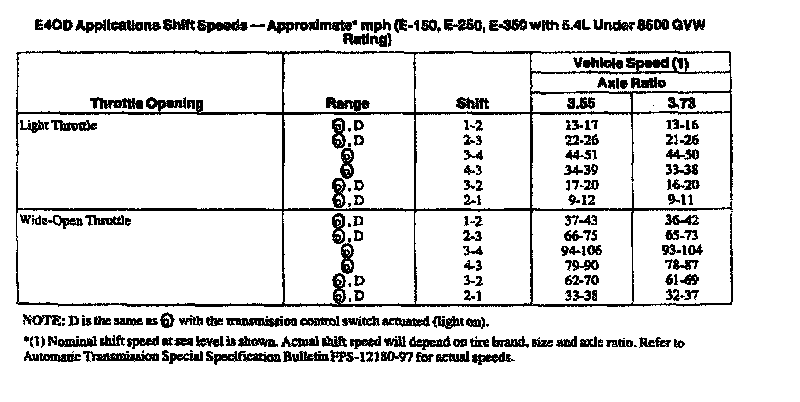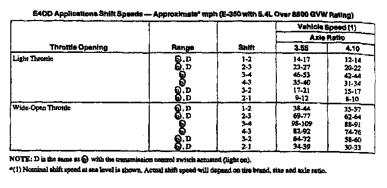 E4OD 4-spd A/T, Shift Speeds (5.4L E-150-350):