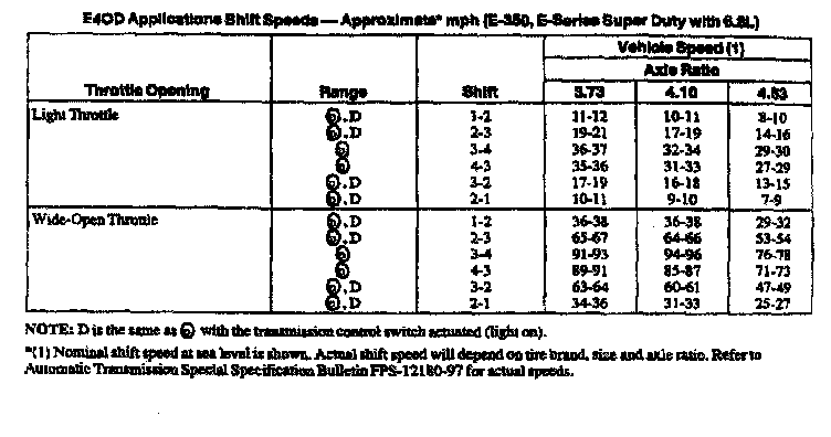E4OD 4-spd A/T, Shift Speeds (6.8L E-Super Duty, E-350,):