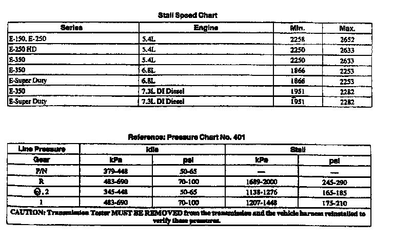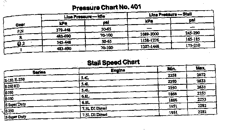 E4OD 4-spd A/T, Pressure Chart/Stall Speed: