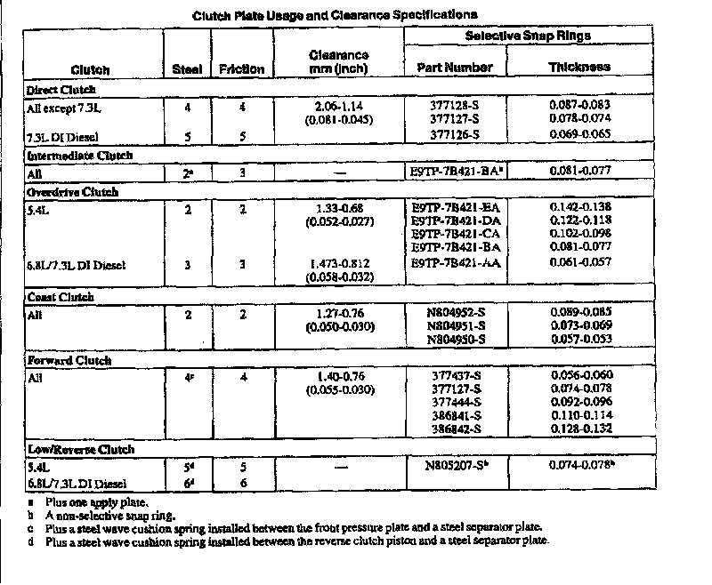 E4OD 4-spd A/T, Clutch Plate Usage/Clearance: