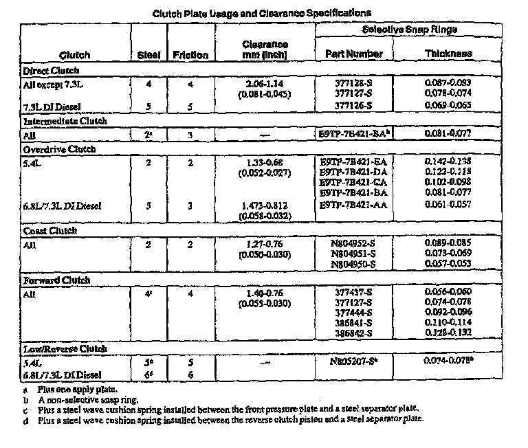 E4OD 4-spd A/T, Clutch Plates Usage/Clearances: