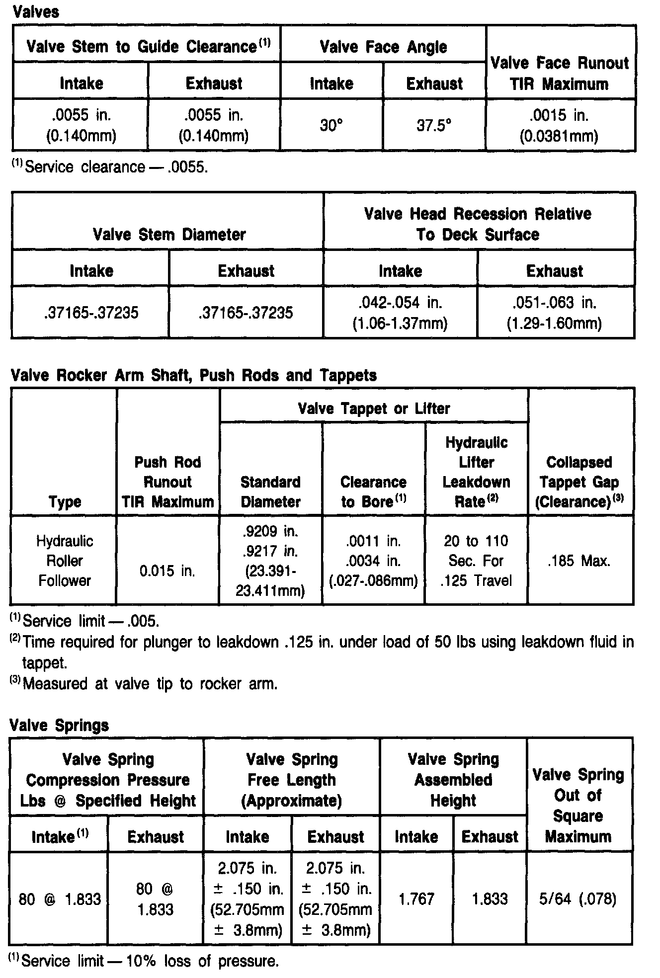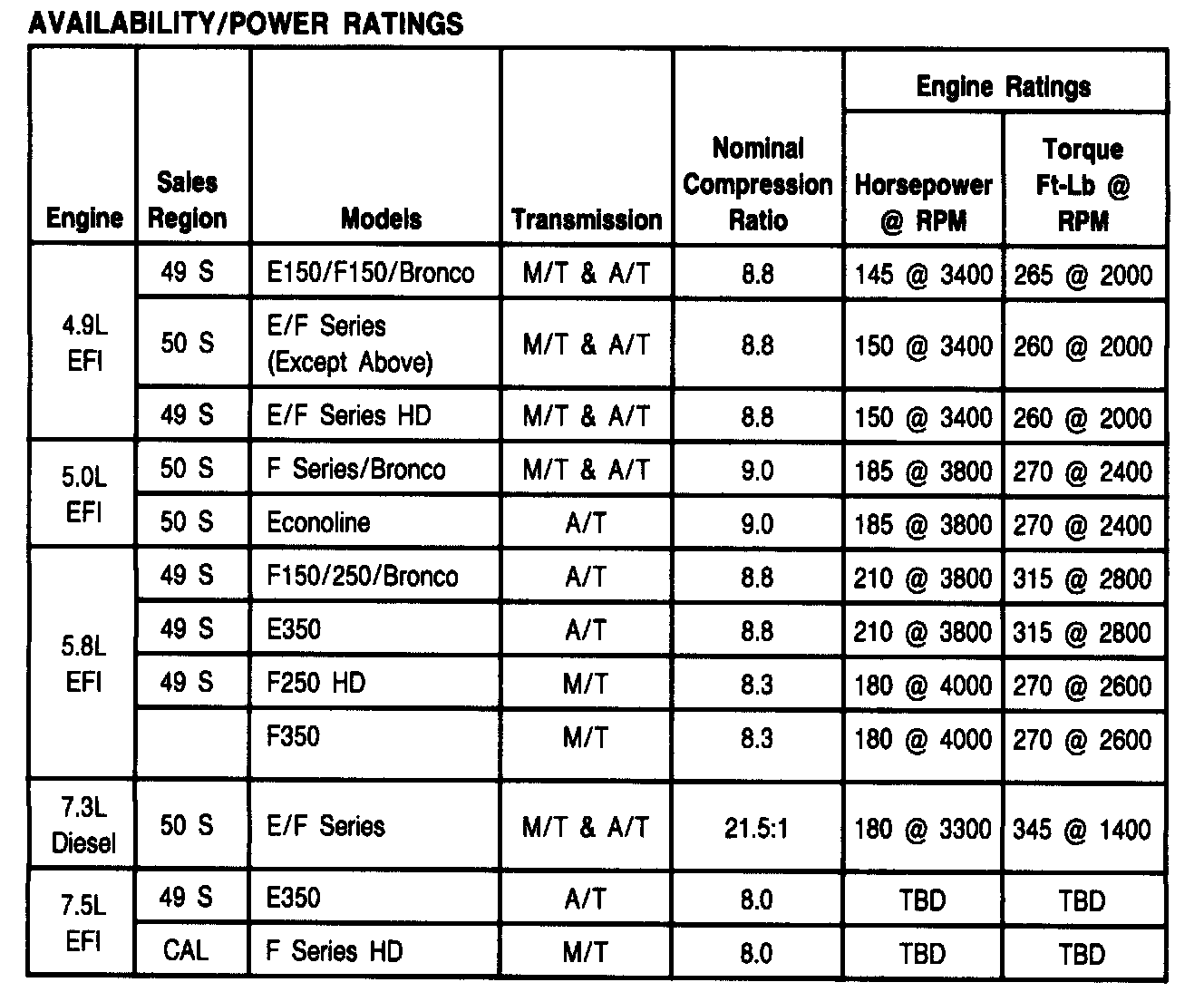 NOTE 1: Vehicles listed as CAN are over 6000 GVWR, and are equipped with unique leaded fuel calibrations. Ratings of Canadian vehicles not shown as unique are identical to 49- or 50-State applications.