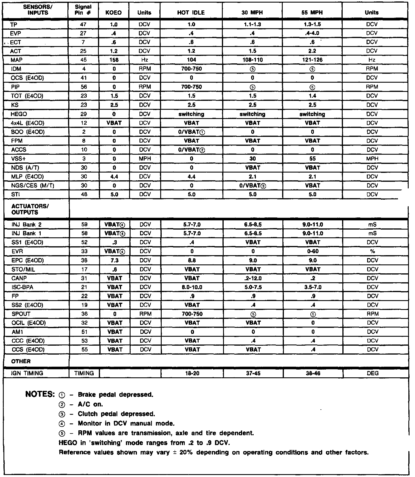 Normal Scan Data Values (Includes PIDs)