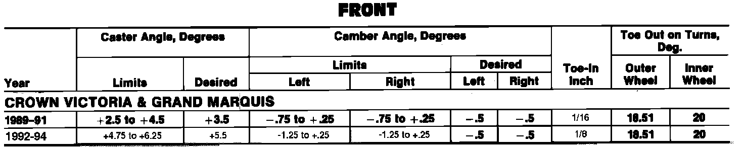 Wheel Alignment Specifications: