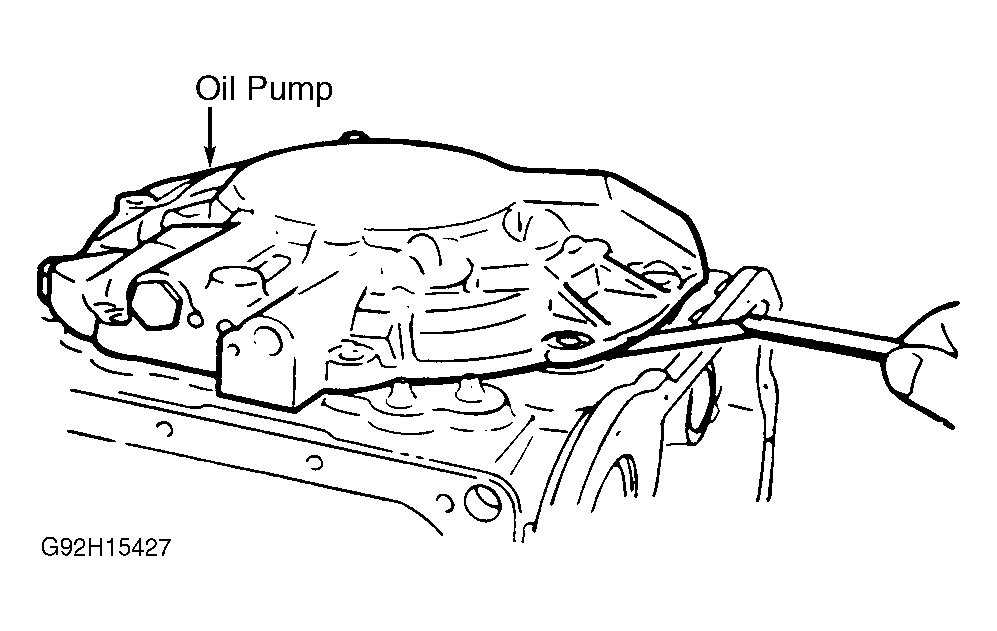 17. Place needle bearing on clutch assembly. To adjust total end play, remove previous thrust washer and gasket from oil pump. Place a .087" (2.20 mm) thrust washer on oil pump. Set oil pump on clutch assembly.