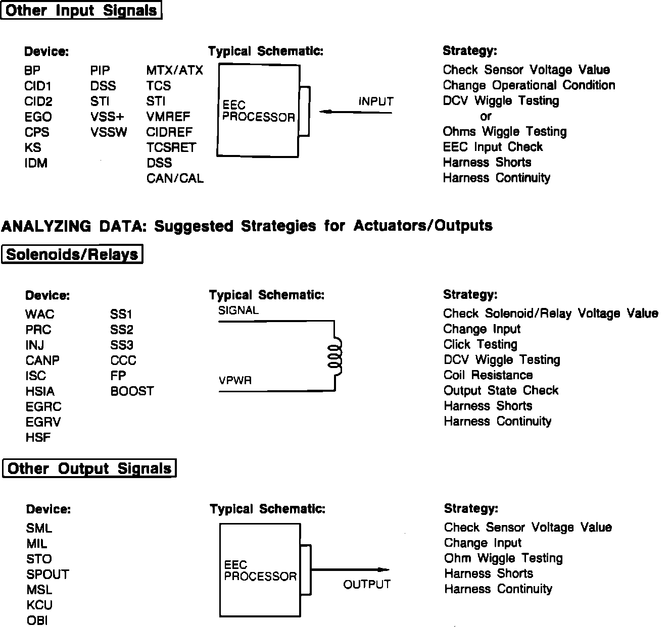 Use any of the following methods to further diagnose a suspected EEC signal or device. Some methods pertain to a certain type of EEC device. Follow the given strategy listed for each type of EEC signal.