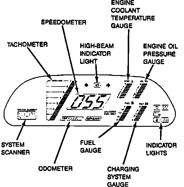 At 7,500 mile intervals, a Service Check message will be displayed under the System Scanner nomenclature on the instrument cluster for three minutes after engine start, Fig. 7. After performing the required interval service, reset the service interval by depressing and holding the Service reset button, located on the speed alarm keyboard, until three tones have sounded, Fig. 8.