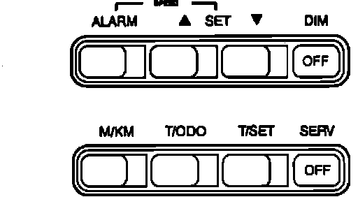 On models with Vehicle Maintenance Monitor, at 7,500 mile intervals a Service lamp, located on the overhead map lamp console, will be illuminated for 3 minutes after engine start, Fig. 9. After performing the required interval service, reset the service interval. On models with speed alarm keypad, depress and hold the Service reset button, until three tones have sounded. On models less speed alarm keypad, locate reset hole in overhead console, then using a suitable tool depress the reset button located behind the hole.
