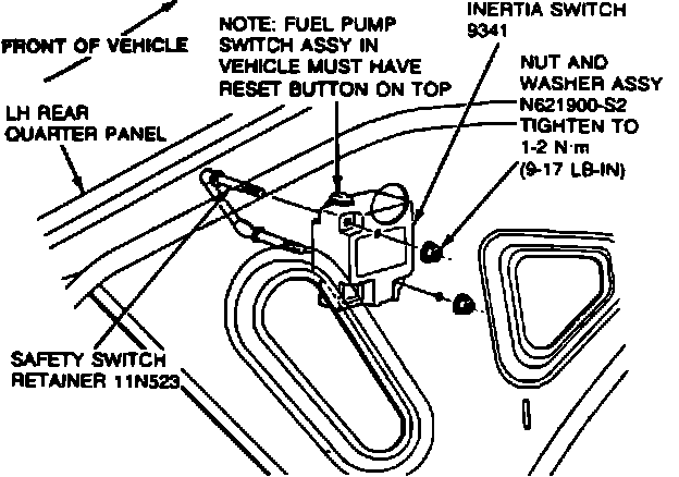 INERTIA SWITCH: The inertia switch is located behind LH interior liftgate area trim panel.