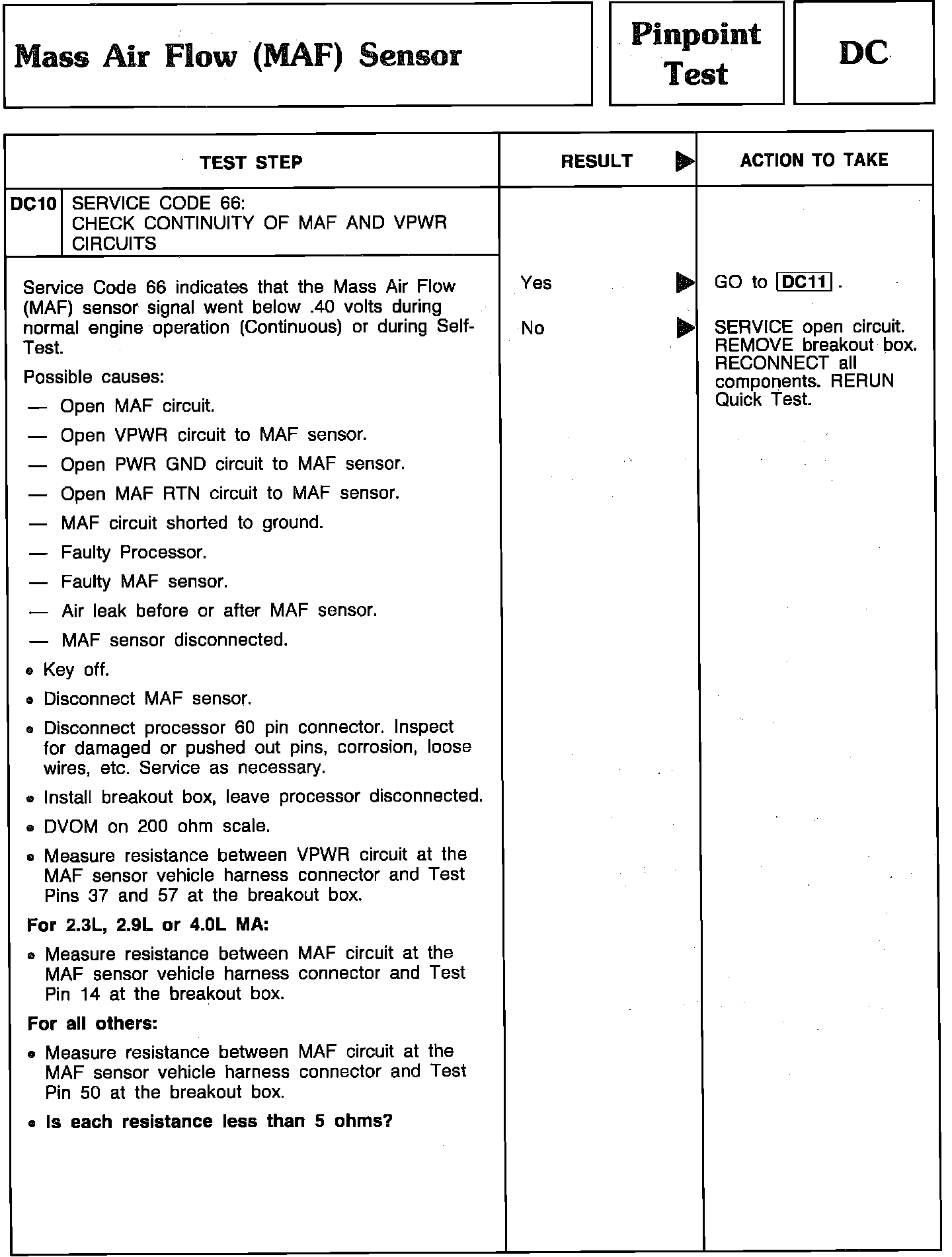 Pinpoint Test DC10 - Mass Airflow Sensor (MAF):