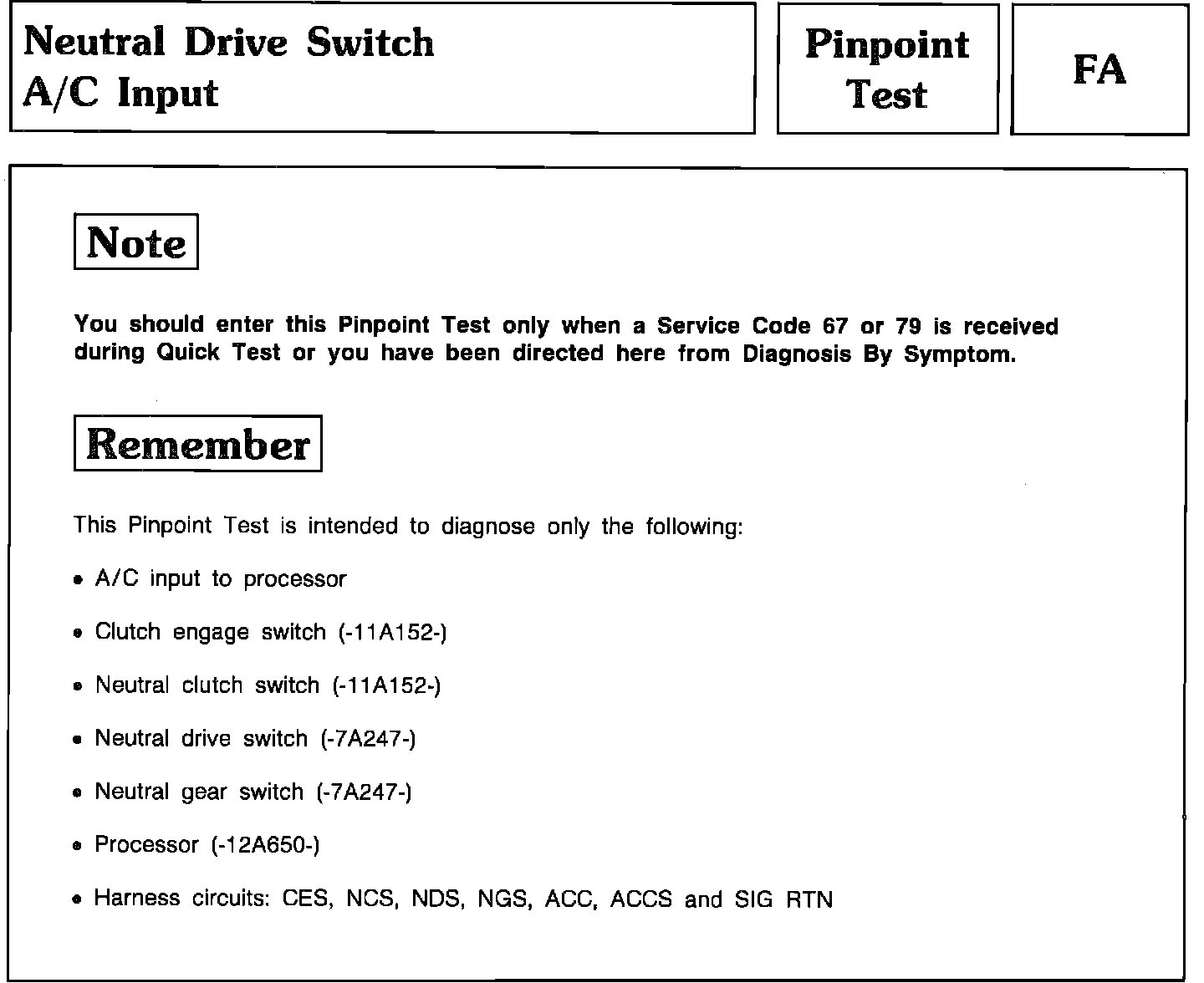 Pinpoint Test FA - Neutral Drive Switch A/C Input:
