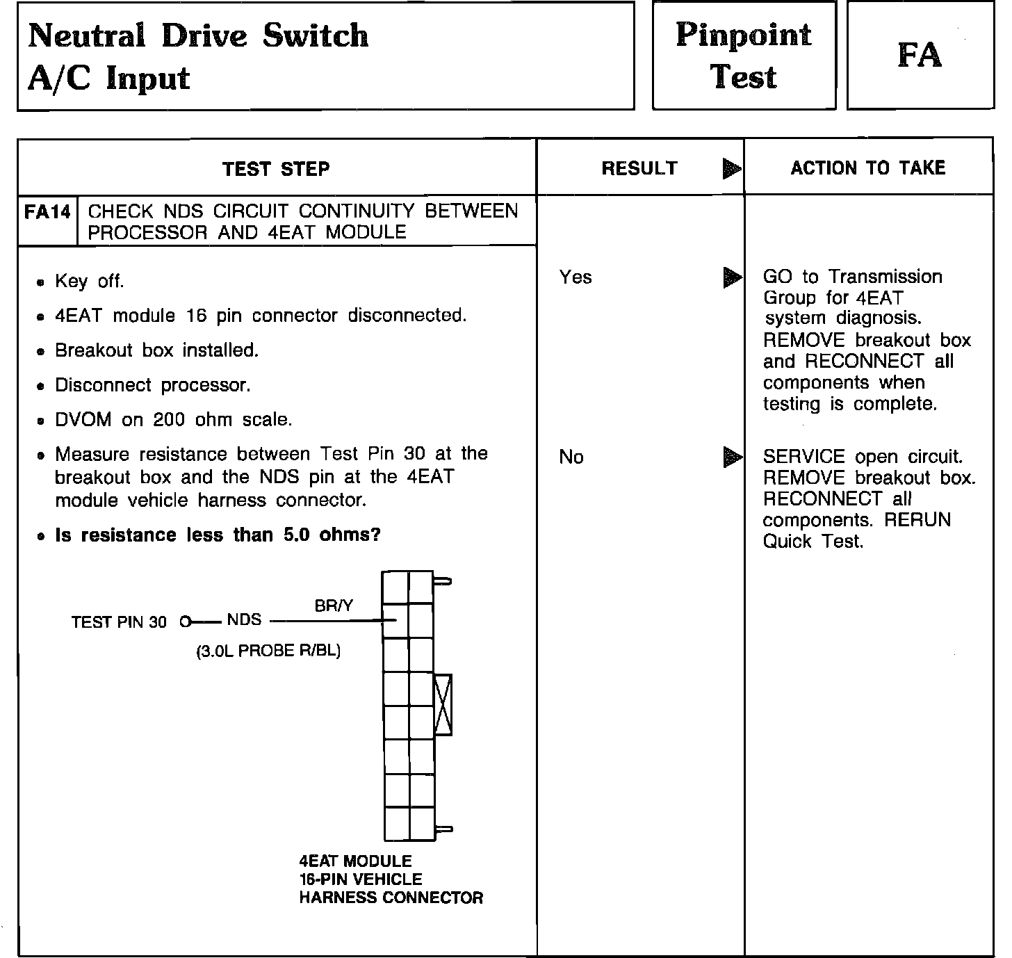 Pinpoint Test FA14 - Neutral Drive Switch A/C Input: