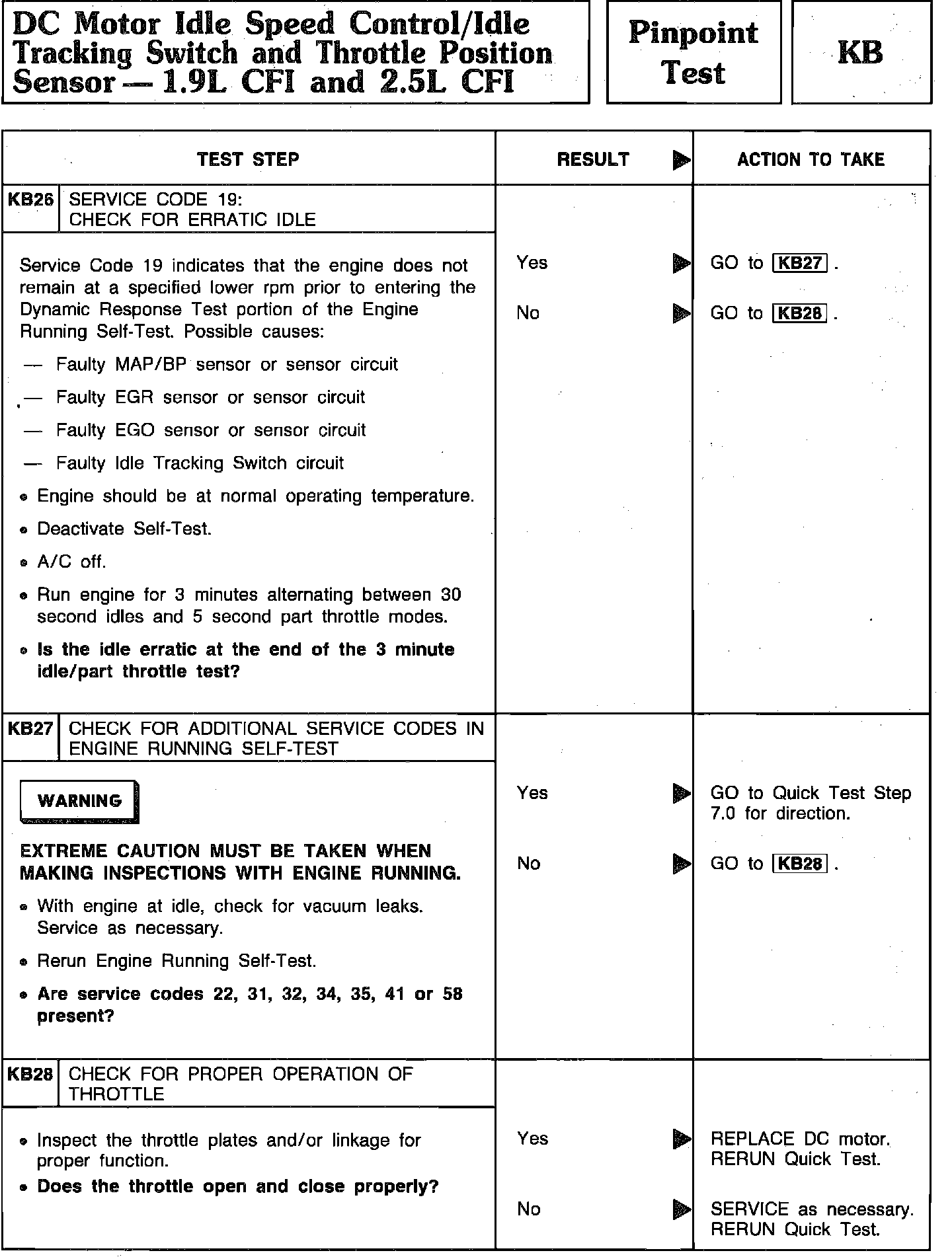 Pinpoint Test KB26 Thru KB28 - DC Motor Idle Speed Control/Idle Tracking Switch/TPS: