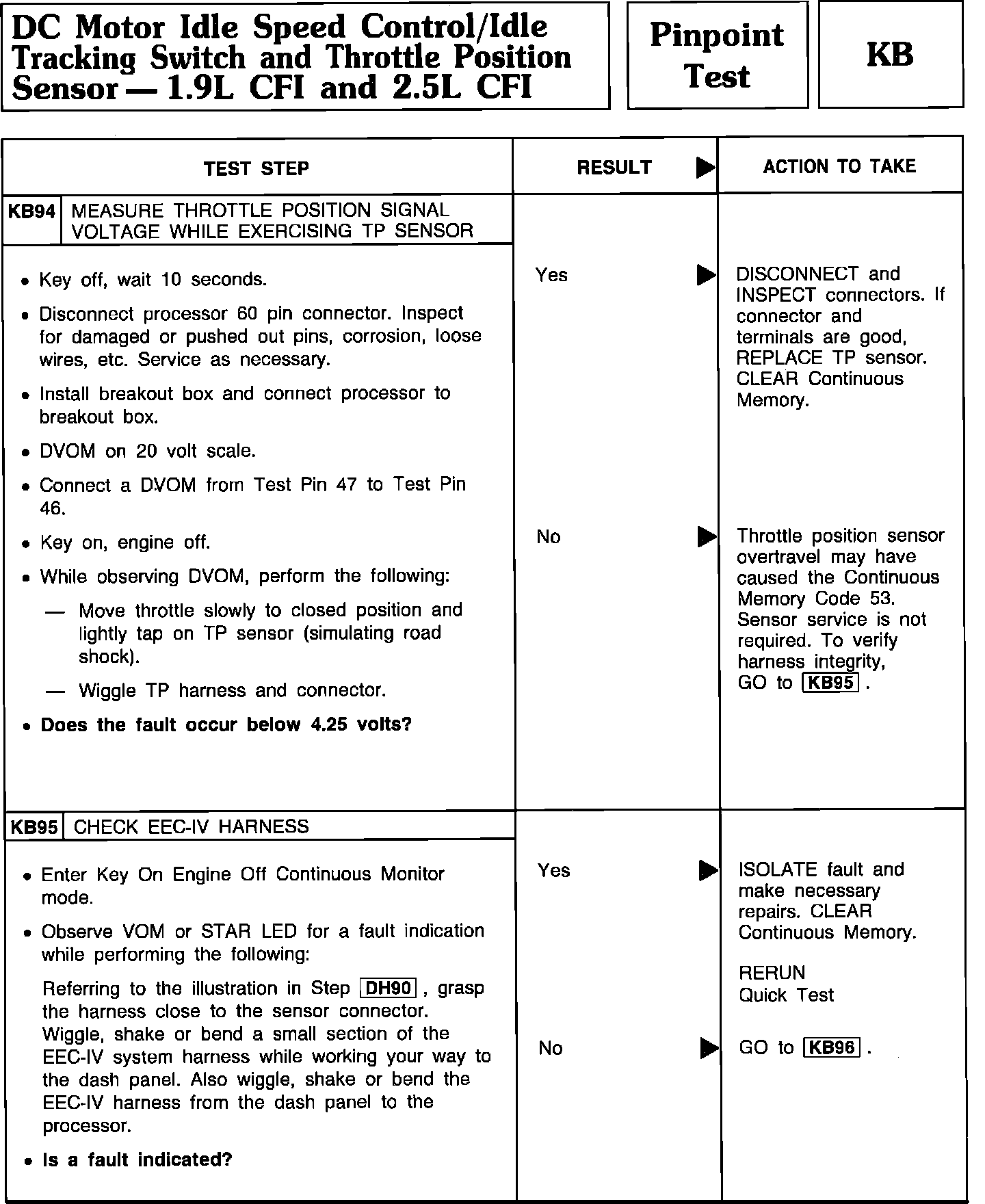 Pinpoint Test KB94 & KB95 - DC Motor Idle Speed Control/Idle Tracking Switch/TPS: