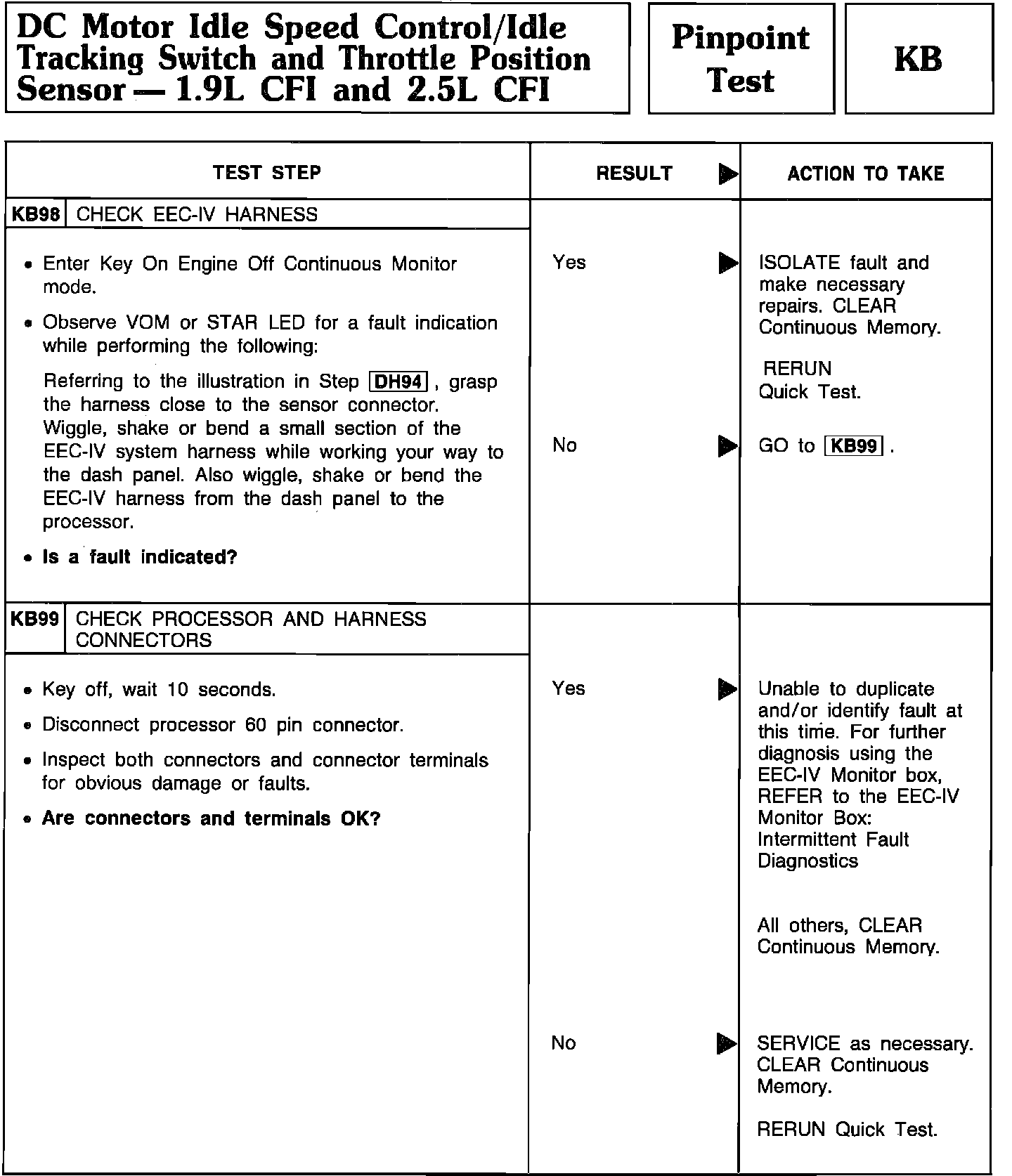 Pinpoint Test KB98 & KB99 - DC Motor Idle Speed Control/Idle Tracking Switch/TPS: