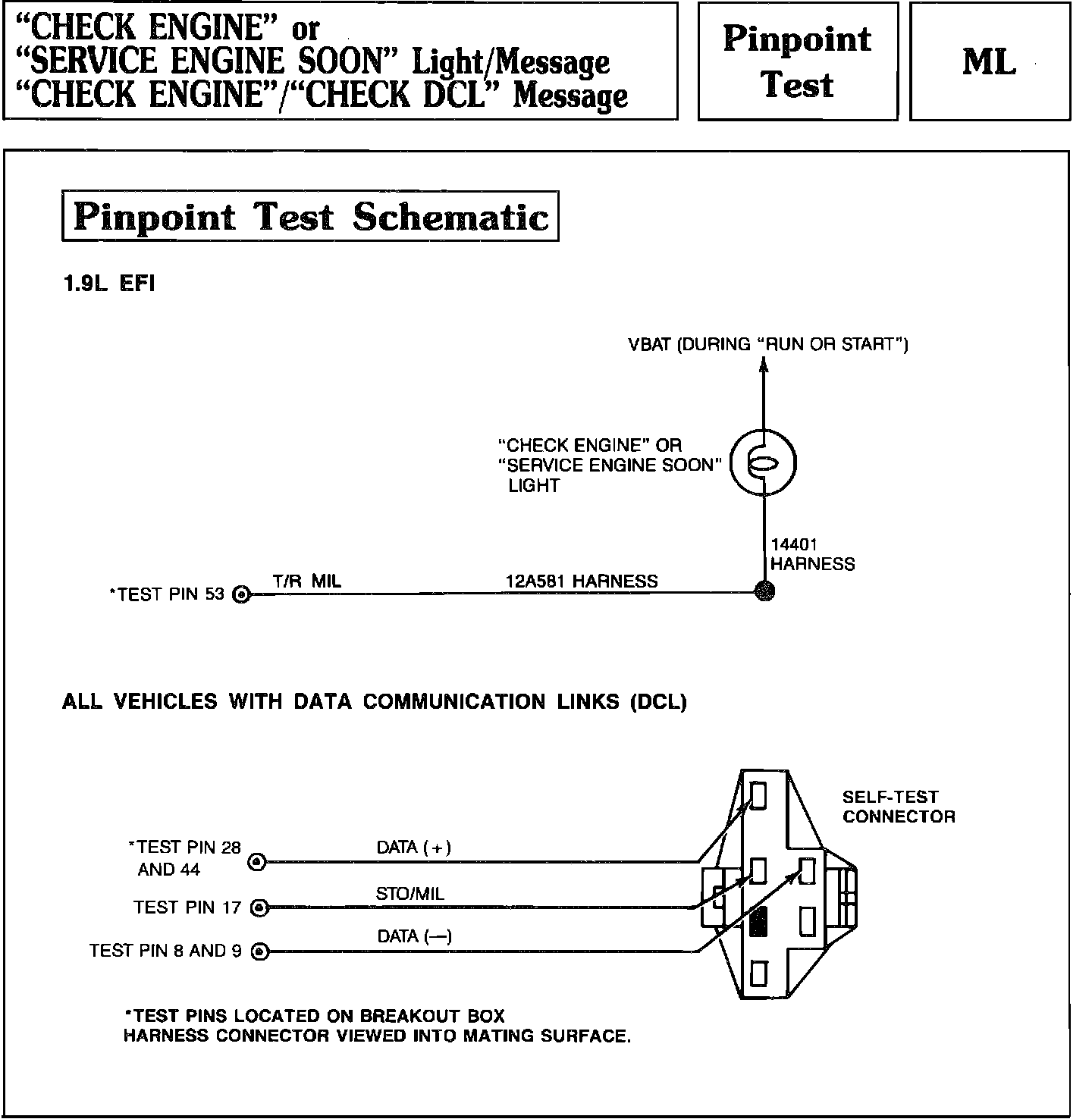 Pinpoint Test ML - "CHECK ENGINE" Light/Message/"CHECK DCL" Message: