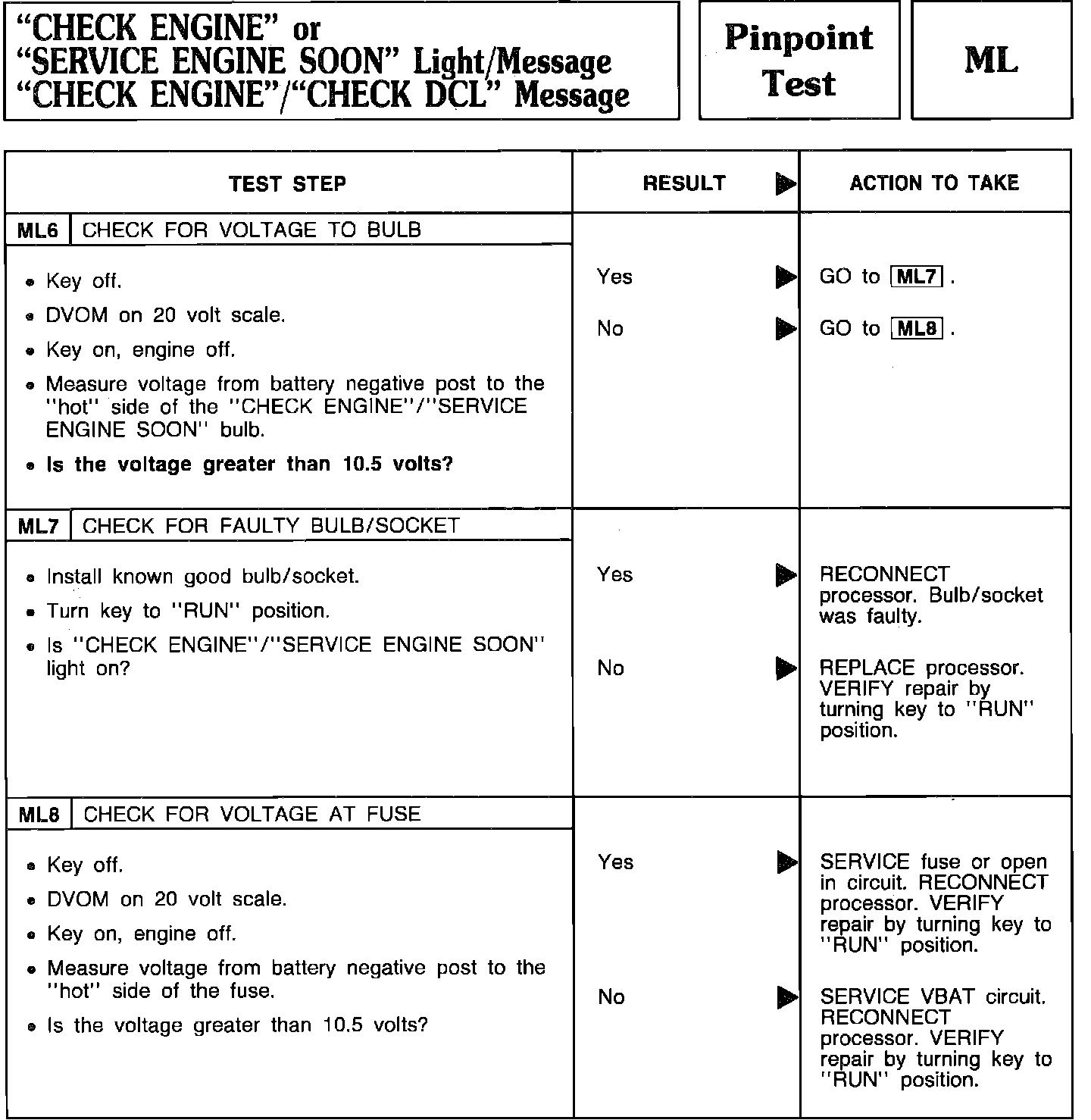 Pinpoint Test ML6 Thru ML8 - "CHECK ENGINE" Light/Message/"CHECK DCL" Message: