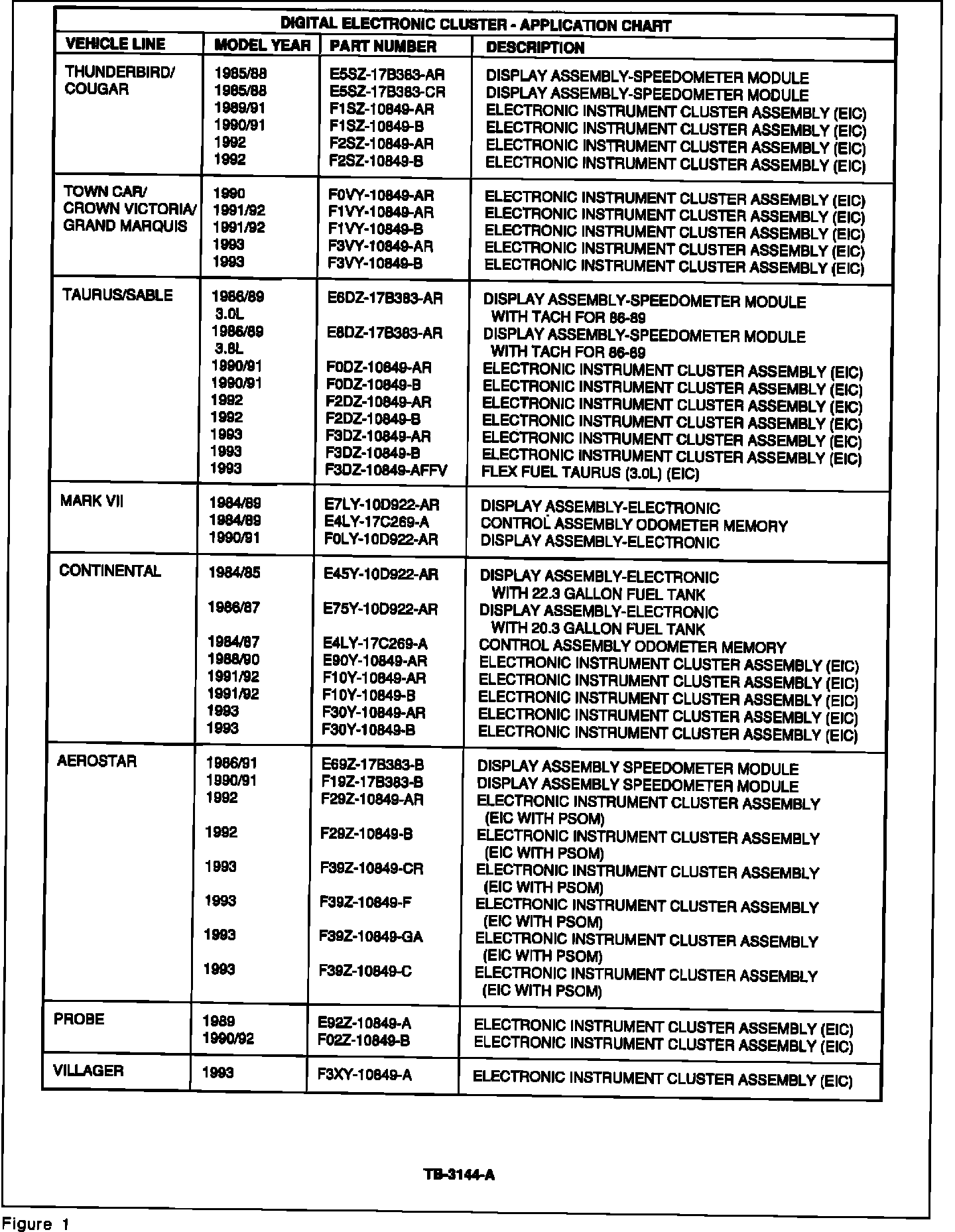 Home >> Ford >> 1990 >> Probe V6-182 3.0L >> Repair and Diagnosis >> Relays and Modules >> Relays and Modules - Instrument Panel >> Speedometer Module >> Technical Service Bulletins >> Speedometer - Service Replacements With Pre-Set Mileage