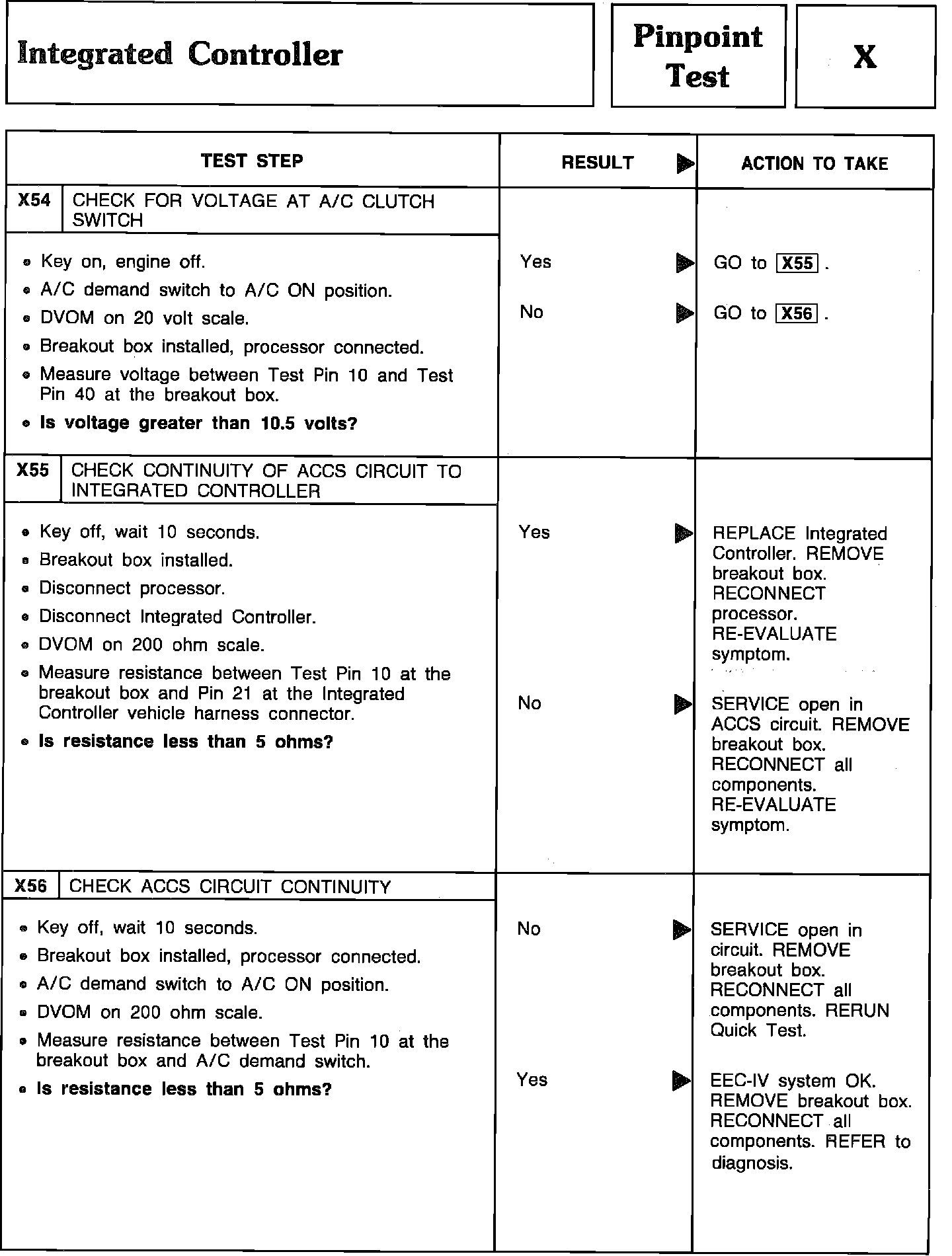 Pinpoint Test X54 Thru X56 - Integrated Controller: