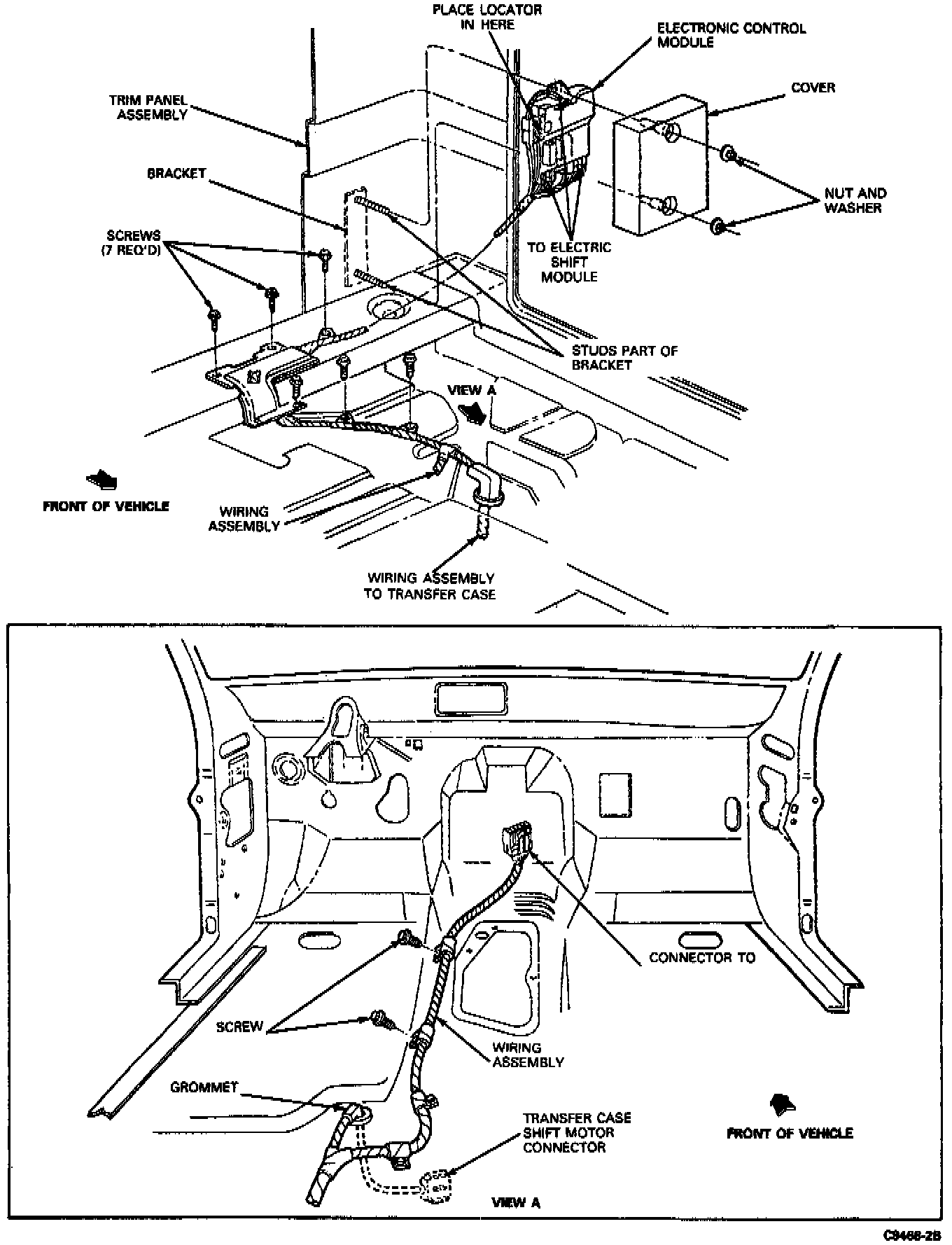 The Electric Shift Control Module is located at the lower Left Hand rear corner of cab.